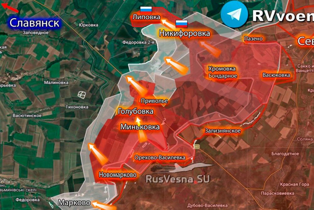 Группировка ВС РФ «Юг» продвинулась вперед на славянско-краматорском направлении в ДНР. После освобождения Хромовки и Бондарного российские войска продолжили движение с боями на северо-запад, вдоль трассы на Славянск. (function () {VK.Widgets.Post ("vk_post_-107986197_81014", -107986197, 81014, «6eeQGyu2lNR2CRDlZItqnny_w6C5»);} ()); "> Противник выбит из Никифоровки и Липовки. Общая площадь продвижения составила до двух квадратных километров, пишут «Военкоры Русской весны». Южнее, у Красноармейска, новобранец-морпех подбил Abrams на вторые сутки день боевой службы. Солдат окончил курсы операторов БПЛА, попал на передовую и на второй день обездвижил американский танк. Следующий дрон его добил.