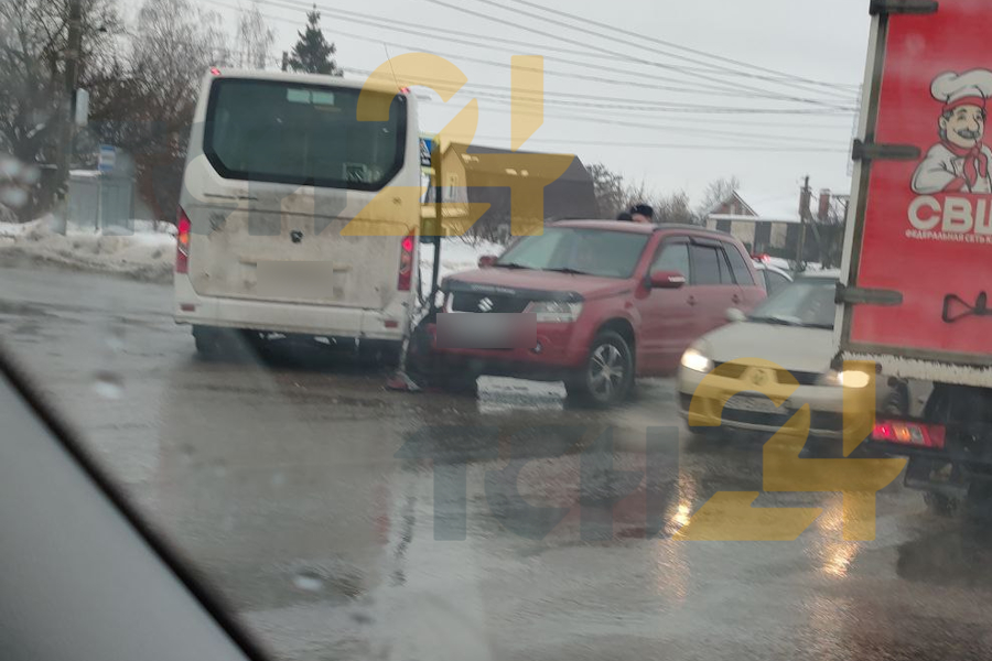 Тройное ДТП с участием автобуса произошло сегодня днём, 13 февраля, на Одоевском шоссе в Туле. Об этом ТСН24 сообщили очевидцы аварии.