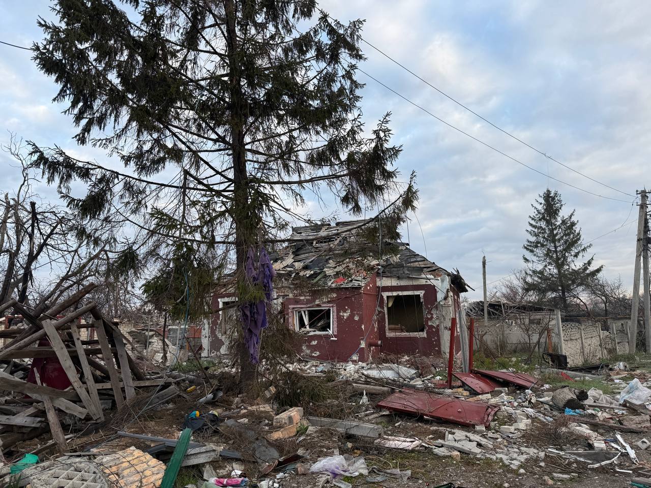 Он выводит нас на соседнюю улицу огородом — мимо разрушенной пристройки, мимо воронки в земле, мимо сотен лесок оптоволокна от запутавшихся дронов. Когда-нибудь Красноармейск будут восстанавливать, но пока что оставшимся здесь жителям надо просто дожить до это момента. Игорю и его маме помогли продержаться и уцелеть фантастическое упорство, даже упрямство. Они не захотели никуда уезжать с родной земли. Наверное, эти качества заставили их остаться здесь, чтобы строить заново свой город.