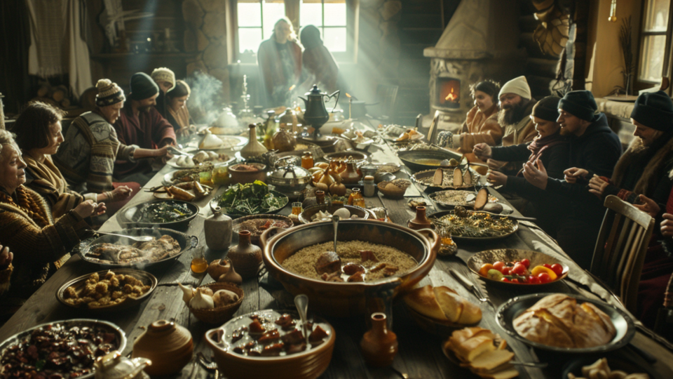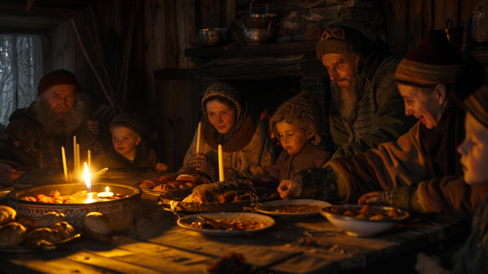 На стол ставили каши из пшеницы и ячменя, мясные щи, запеченные пироги с капустой или рыбой. Хозяйки варили узвар – сладкий напиток из сухофруктов, который символизировал плодородие и мир в семье.