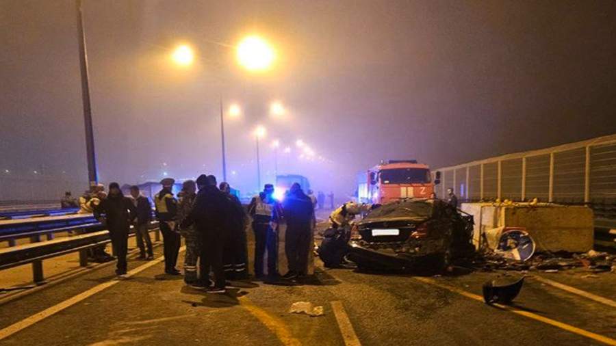 Уточняется, что водитель автомобиля марки Mercedes, осуществляя обгон пассажирского автобуса на автомобильной части Крымского моста автодороги Новороссийск – Керчь, не справился с управлением и допустил наезд на бетонное ограждение.
