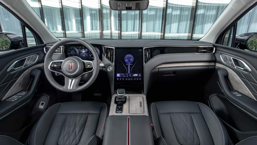 Интерьеры решены в общем стиле, чуждом современному минимализму китайских гибридов. Разнофактурный пластик, кожа с контрастной прострочкой, металл, дерево, глянцево-черный «рояльный» лак. У флагмана HS7 к серебристому металлу еще добавлена «медь» в воздуховодах. Получилось «богато», но несколько аляповато. Интерьер «семерки» производит впечатление старомодного — обычный, а не сплюснутый руль с круглой ступицей, центральный дисплей интегрирован по центру панели, а не сделан в виде отдельного планшета.
