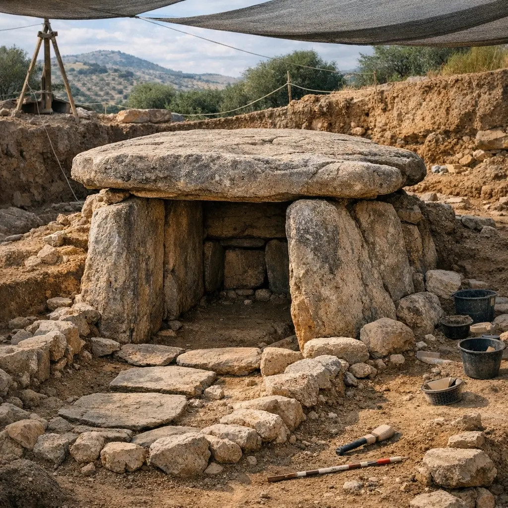 Дольмен Менга — древнее мегалитическое сооружение, возведённое около 5500 лет назад и входящее в список Всемирного наследия ЮНЕСКО. У входа в гробницу археологи нашли останки двух пожилых мужчин, захороненных с разницей примерно в 190 лет в период VIII-XI веков.
