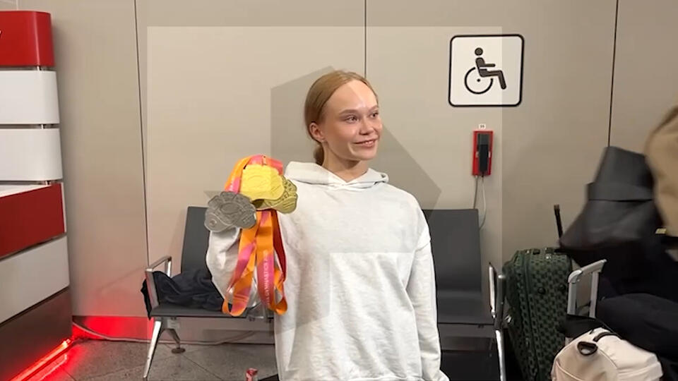 Российские гимнасты Ангелина Мельникова и Даниел Маринов вернулись в Москву после завершения чемпионата мира в Индонезии. Об этом сообщил корреспондент РЕН ТВ.