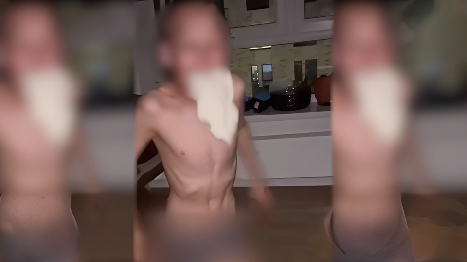 На записи видно истощенного мальчика – он болезненно худой, с коротко остриженной головой, тряпкой во рту и множеством гематом по всему телу.