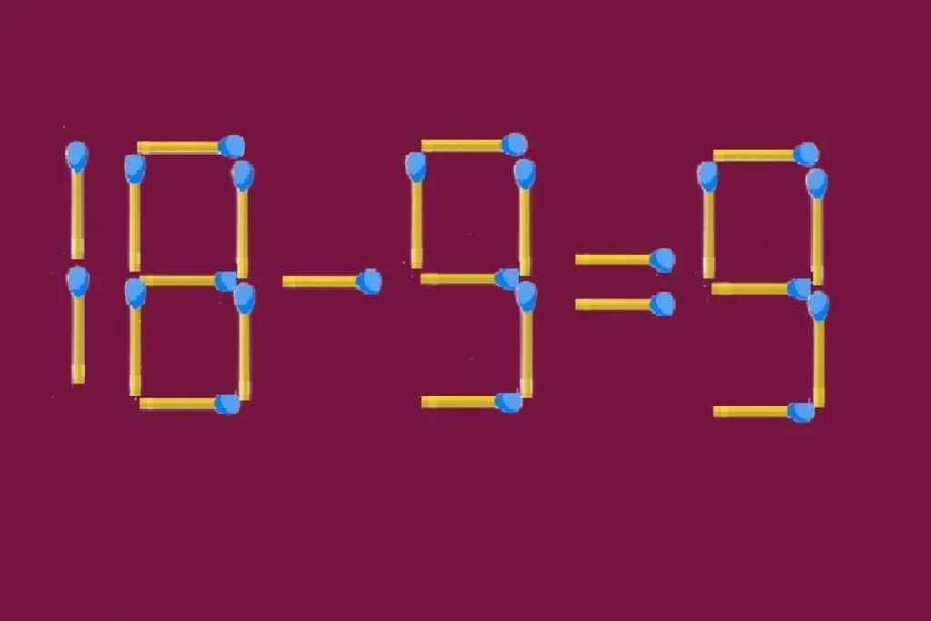 Долго ломаете голову, а ответ не приходит? Смотрите, какое ловкое решение. Забираем одну спичку из восьмерки в ответе и переносим ее в ноль, превращая ноль в восьмерку. Получается «18 - 9 = 9». Теперь все правильно и красиво.