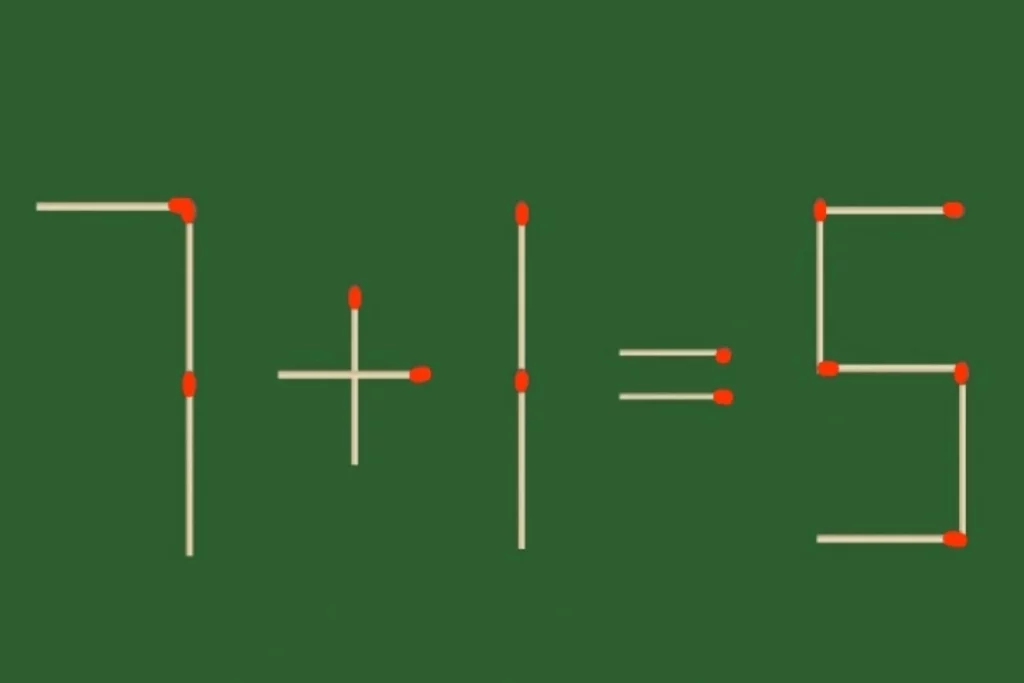 Дан пример из спичек: 7 + 1 = 5. Одна спичка лежит неправильно. Нужно найти ее и переложить так, чтобы равенство стало верным. Засеките 20 секунд, советует ИА Nord-News.