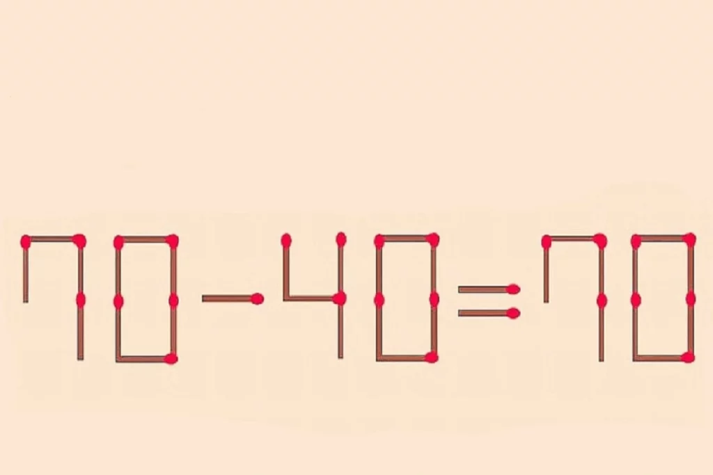 фото: nord-news.ruПеред вами классическая головоломка со спичками. Дано неверное равенство: 70 – 40 = 70. Согласно условиям задачи, вам необходимо сделать его правильным. Но передвигать вы можете всего одну спичку. Время тоже ограничено: 10 секунд!