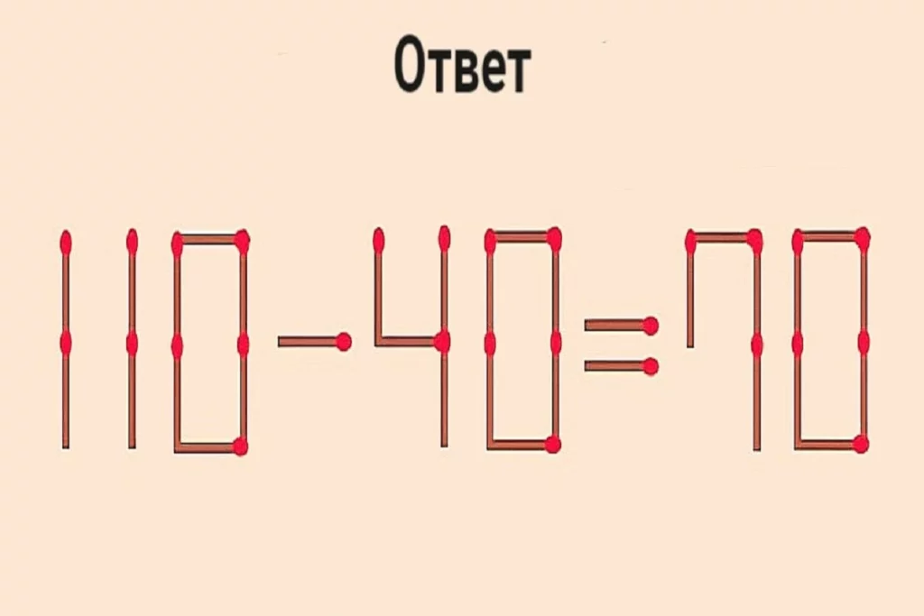 Получится верное равенство: 110 – 40 = 70. Подобные головоломки отлично тренируют внимание, а также нехило прокачивают способность мыслить нестандартно.