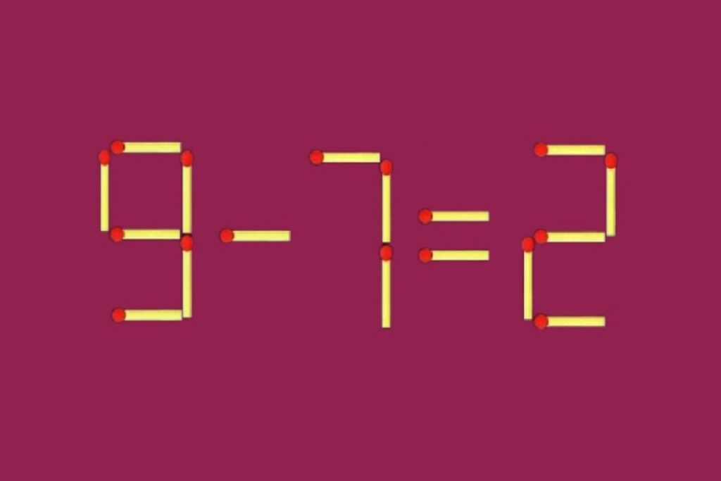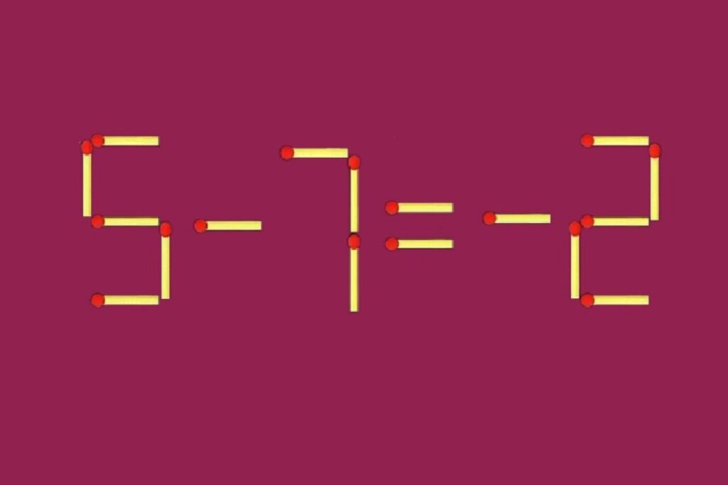 Перебрали все варианты и ничего не выходит? Тогда включайте хитрость. Сделайте из девятки пятерку, а освободившуюся спичку отправьте в ответ. Да, отрицательное число — тоже законный вариант. Получается корректная запись «5 - 7 = -2».