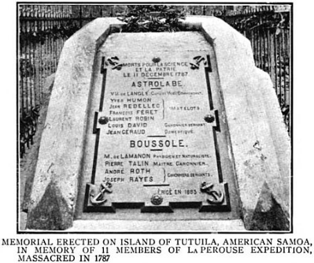 Мемориал экспедиции Лаперуза в Аасу, Американское Самоа Public DomainПосле трагедии на Самоа экспедиция направилась в Австралию, где её встретила британский флот, направленный для колонизации материка. Лаперуз дал отдых экипажу, запасся водой и передал через англичан письма в Европу. Он сообщил, что планирует посетить Новую Каледонию и другие острова Тихого океана. С тех пор никто из европейцев участников экспедиции Лаперуза не видел.