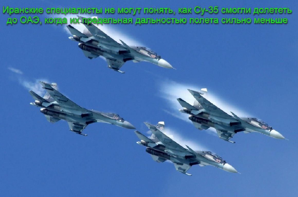 Или же могла произойти дозаправка истребителей в воздухе. Например, в воздушном пространстве Ирана, правда, в воздушном пространстве Ирана наше звено летело не одно.