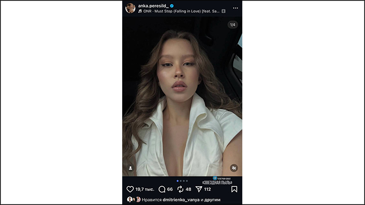 16-летняя Анна Пересильд выкладывает фото с "очаровательными глазами". Почти 20-летний Ваня Дмитриенко оценил. Фото: ТГ-канал @starsdustpro