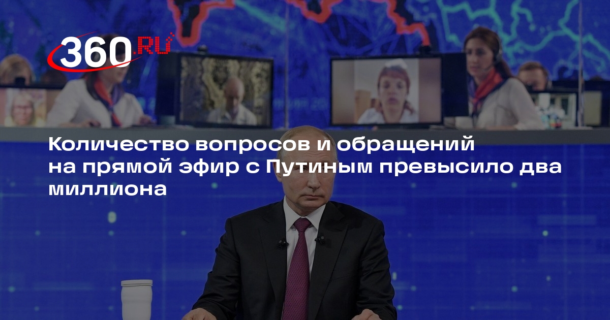 Более двух миллионов вопросов и обращений поступило в программу «Итоги года с Владимиром Путиным. Об этом говорится в репортаже корреспондентов телеканала „Россия 24“.. На момент написания материала общее число вопросов и обращений составило 2 057 319. Это число продолжает постоянно увеличиваться. В пресс-службе Кремля уточнили, что по данным на 12:00 четверга, 18 декабря, всего поступило 918 тысяч звонков и 394 тысячи вопросов через мессенджер MAX, 328 тысяч СМС-сообщений, 238 тысяч обращений через соцсети, 83 тысячи вопросов через сайт, 67 тысяч ММС-сообщений и 25 тысяч вопросов через специальное приложение. Программа «Итоги года с Владимиром Путиным» выйдет в эфир в ближайшую пятницу, 19 декабря, в 12:00 по московскому времени. Сбор вопросов и обращений для главы государства открыли 4 декабря и продлили до окончания прямого эфира. Официальный представитель Кремля Дмитрий Песков заявил, что президент готовится к выступлению, изучая статистику и справочную информацию из правительственных ведомств. Он добавил, что также Путин получает всю необходимую информацию для подготовки ответов на вопросы россиян. Песков напомнил, что в этом году прямую линию совместят с форматом ежегодной пресс-конференции.
