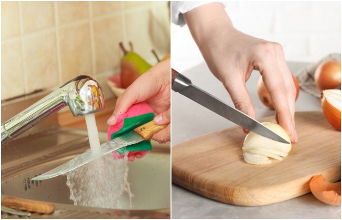 Лайфхак 1: Нарезайте лук мокрым ножом
