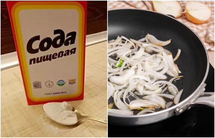 Опытные повара используют для этих целей всеми любимую соду. Она создает щелочную среду, в которой клеточные стенки лука разрушаются намного быстрее, а значит, ускоряется реакция Майера. В результате красивые золотисто-коричневый цвет появляется не через 40 минут, а через 10-15. Цвет получается более глубоким и равномерным, без резких переходов. Вкус также меняется в лучшую сторону: пропадает резкость, горечь, усиливается природная луковая сладость. Овощ перестает хрустеть на зубах, становится мягким, нежным, легко «растворяется» в блюде.