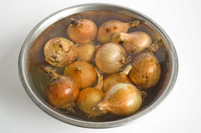 Лук – довольно проблемный овощ. Мало того, что во время его нарезки мы плачем, так еще и приходится потратить много времени на очистку. Сухие чешуйки очень плохо снимаются, и процесс превращается в настоящее мучение. Чтобы этого избежать, попробуйте замочить лук перед началом готовки. Уложите нужное количество головок в миску, залейте холодной водой и оставьте на 15 минут. После того, как чешуйки пропитаются влагой, вы сможете легко снять шкурку. Воспользуйтесь одним из следующих способов: