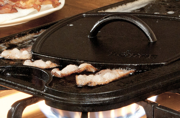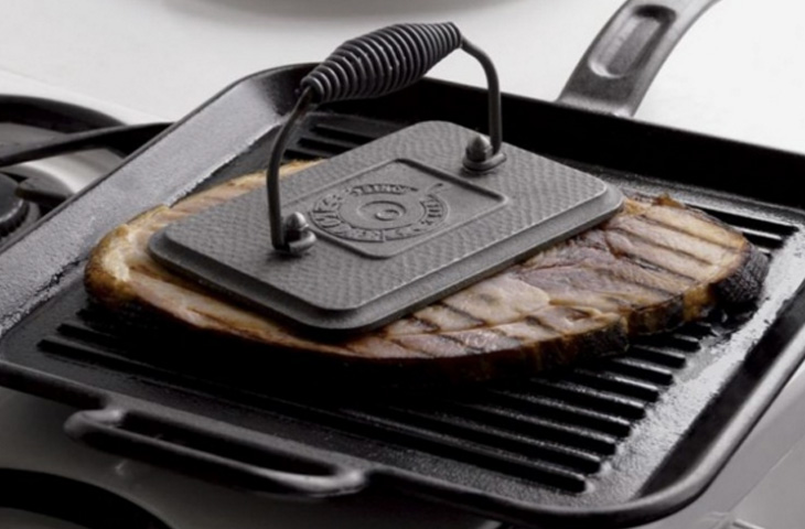 Компания Lodge выпускает чугунную посуду с позапрошлого века, и этот производитель как никто другой знает толк в хорошей кухонной утвари из чугуна. За 119 лет своего существования фабрике не только удалось не захиреть, но и существенно расширить свое дело и ассортимент. Накопленный опыт позволяет им мастерски совмещать традиции производства чугунной посуды и современные технологии. Они запросто могут взять старую идею и дать ей вторую жизнь. Примерно так и произошло с прессом для гриля, когда был взят на вооружение «бабушкин способ» ставить на блюдо тяжелый груз, который заменили на удобный чугунный пресс. Такой аксессуар — практически незаменимая вещь в хозяйстве, и для него можно найти по меньшей мере 5 способов применения.
