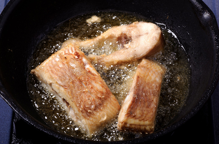 Жарите вы на сковороде или во фритюре, еда впитает слишком много масла и станет жирной, если масло не разогреть хотя бы до 180 °C. Используйте только рафинированное масло, так как оно начинает дымиться при гораздо большей температуре, хорошенько разогрейте сковороду или фритюрницу и приступайте к обжариванию. Вы можете проверить, достаточно ли нагрето масло, бросив в него небольшой кусочек хлеба — он должен обжариться за 10 секунд.