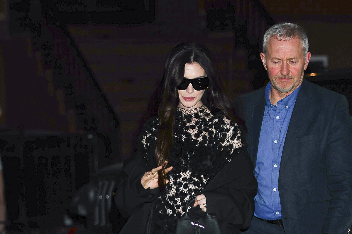 Папарацци подловили 43-летнюю Энн Хэтэуэй 14 апреля в Нью-Йорке. Актриса направлялась на вечеринку по случаю презентации фильма "Мать Мария", где сыграла главную роль. Артистка позировала перед фотографами в черном прозрачном платье-сетке, спущенном пальто и туфлях на каблуках. Знаменитость добавила к образу солнцезащитные очки, сумку и кольца. Энн Хэтэуэй уложили волосы в локоны и сделали макияж в естественных тонах.