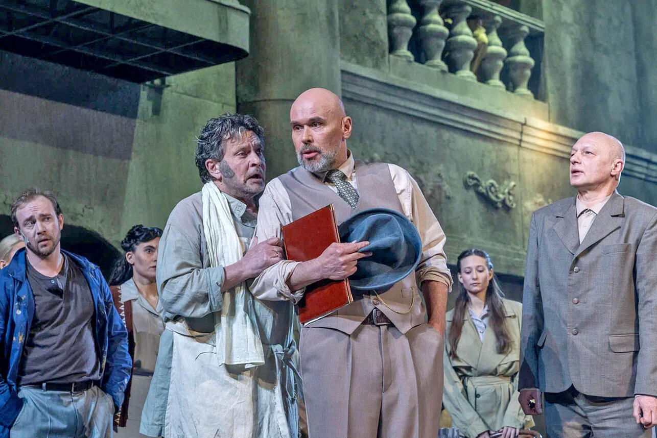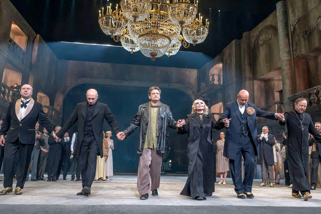 Яна БулашВ спектакле отчетливо звучит каждая деталь. Значимую роль играют видеопроекции – камера приближает главную героиню и следует за артистами, чтобы зрители могли видеть их глаза и эмоции. И мы как будто бы присутствуем рядом с героями в важные для них моменты. Фактически отдельным персонажем становиться массивная люстра из золота и хрусталя, которая в финале опускается на жителей города, погребая всех с их мелкими страстями.