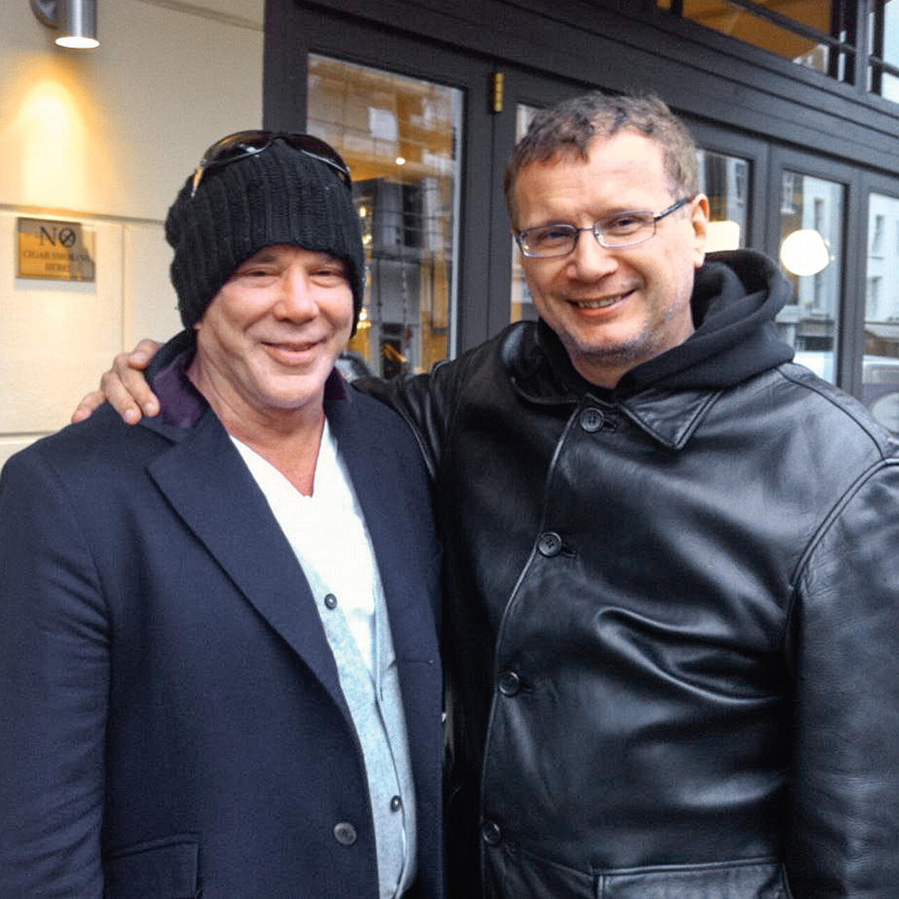 С Микки Рурком. 2000-е гг. из личного архива Андрея Ковалева— Да, Сигал тоже был у меня в гостях. А у меня есть приятель, который реальный супермен. Он стрелы, выпущенные из лука, ловит руками на лету. У него есть самурайский меч XI века! Когда ко мне приехал Сигал, я приятеля тоже пригласил. И он приехал с этим мечом. Так Стивен, когда увидел этот меч, встал на колени и поцеловал клинок, прежде чем взять его в руки.