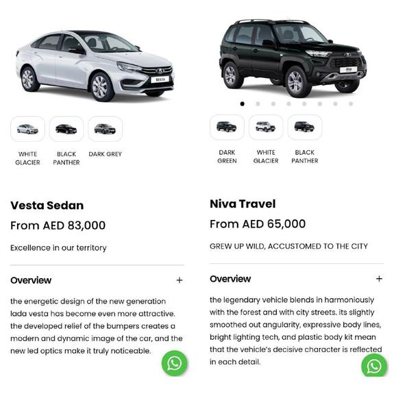 Также есть Lada Niva Travel и Lada Niva Legend стоимостью 65 и 64 тысячи дирхамов соответственно (около 1,4 млн рублей).