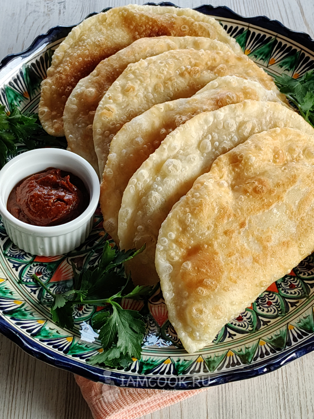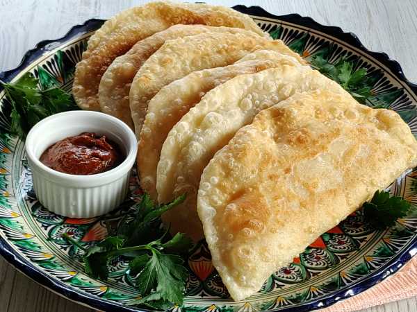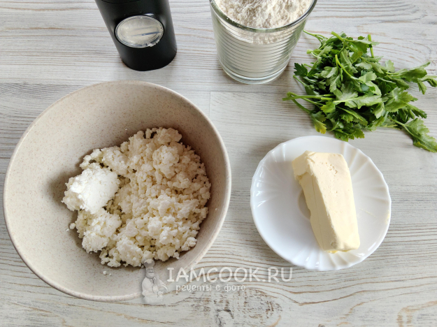 Болгарские ругувачки похожи на чебуреки, только тесто тут на кипятке с добавлением сливочного масла. И начинка не мясная, а творог с зеленью. Сегодня я взяла петрушку, но можно еще добавить укроп, кинзу или что есть.