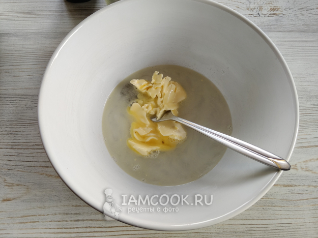 В мягкое масло добавить соль, влить кипяток.