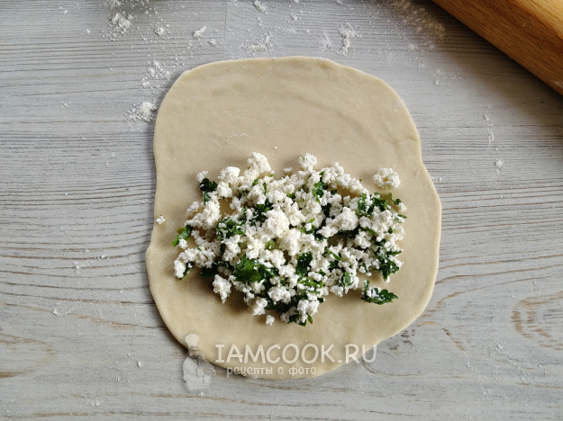 Раскатать тесто в лепешку.