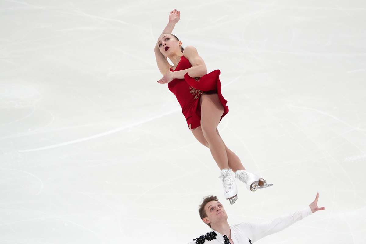 Спортсмены исполнили четверной выброс в произвольной программе и получили за нее 141,92 балла, набрав в сумме 215,34 балла.