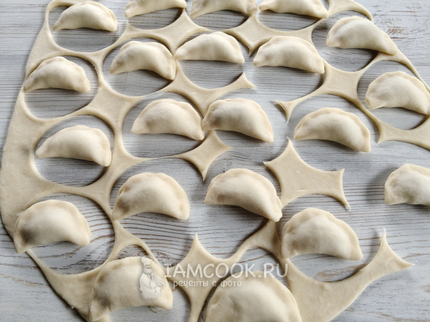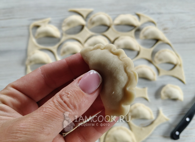 Защипнуть тесто над начинкой.