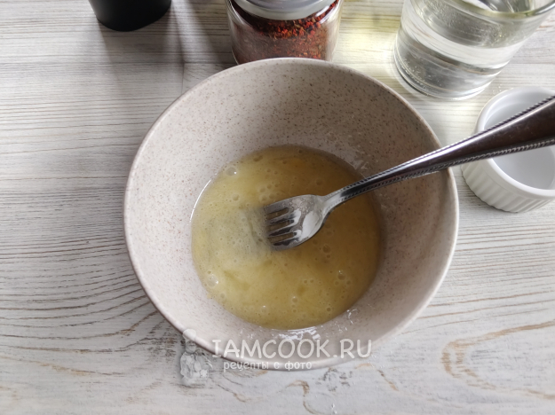 Яйцо с маслом взбить вилкой.