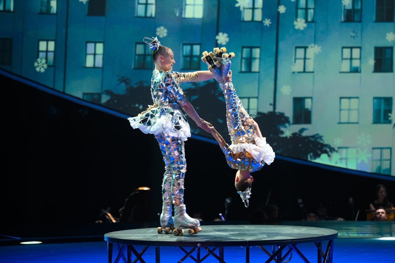 Под хит группы ARTEMIEV 10-летняя Элина Ермолаева и 15-летняя Кристина Межуева из города Орша (Беларусь) продемонстрировали чудеса акробатики. Трюки были сделаны девочками филигранно. Жюри смотрели на них, затаив дыхание и сильно переживали за выступающих, так как номер был очень опасным.