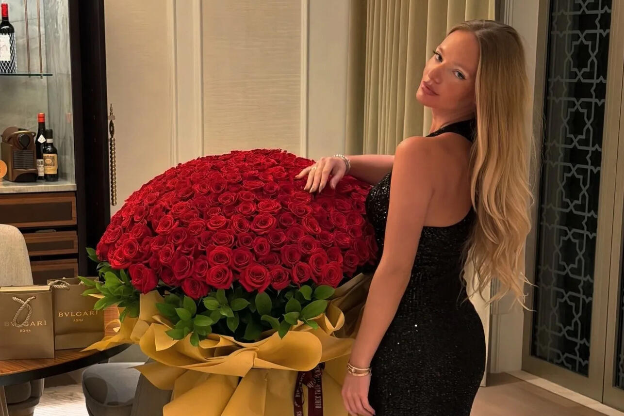 Елизавета с букетом от мужа Социальные сетиЕлизавета, старшая дочь Дмитрия Пескова, отметила 28-й день рождения в ресторане Hakkasan в незабываемой обстановке в Абу-Даби. Она выбрала для этого торжественного события элегантное черное платье в пол с пайетками. На одном из кадров она позирует с букетом алых роз и подарками от мужа — украшениями от известного бренда.