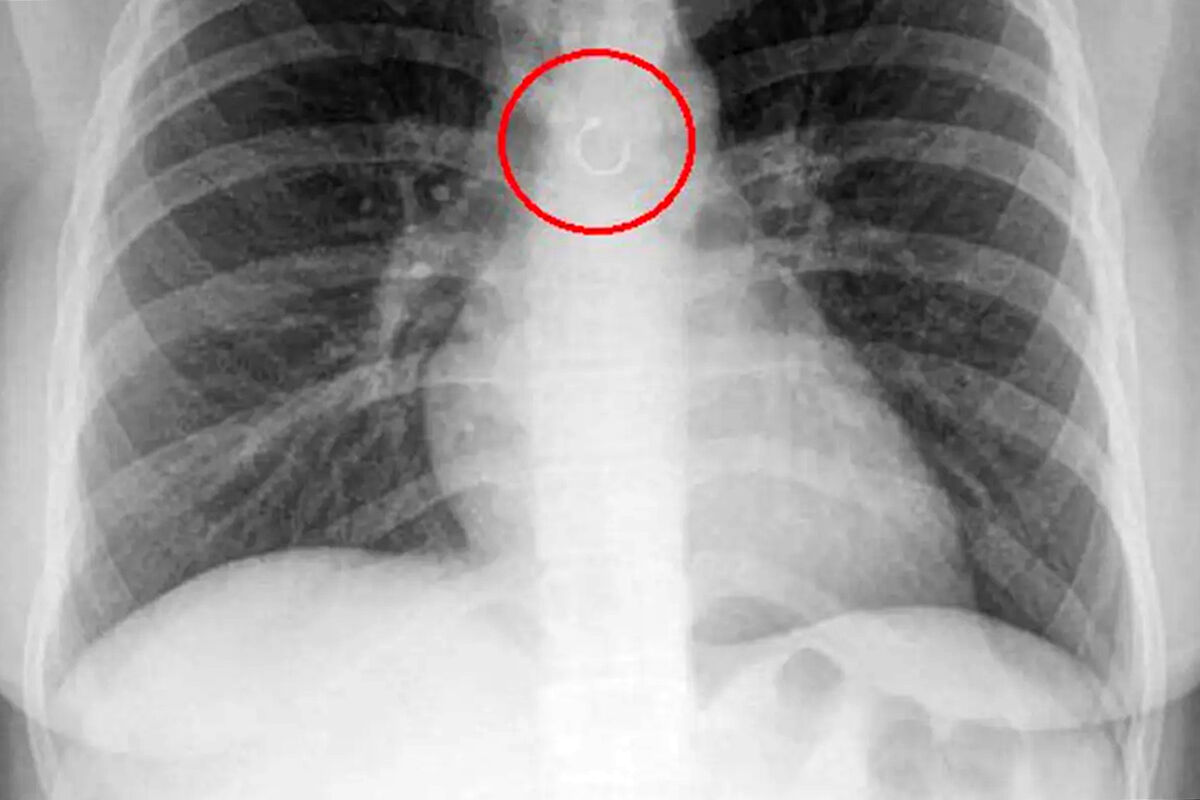 Во время обследования выяснилось, что украшение из пирсинга в носу каким-то образом оказалось глубоко в дыхательных путях девушки и застряло в легких. Металлический элемент находился всего в полумиллиметре от аорты, что могло привести к опасным последствиям, добавили медики.
