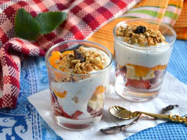 Для приготовления фруктового салата с мюсли и сметанным соусом подготовьте продукты по списку.