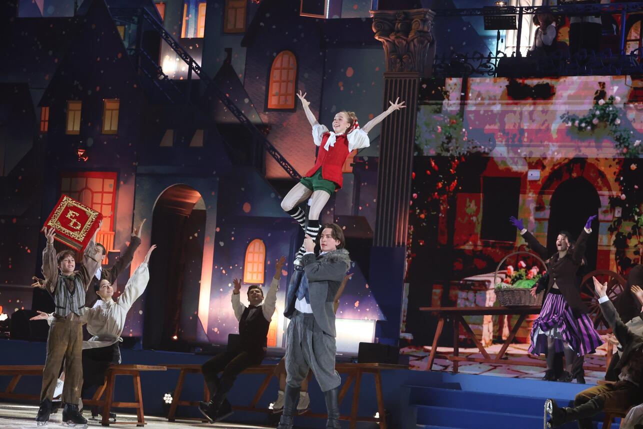 Илья Авербух с детьми Юрий ФеклистовЛедовый спектакль «Буратино», наполненный спецэффектами, трюками, фокусами и интересными сценографическими решениями, пройдет с 27 декабря по 07 января во Дворце гимнастики Ирины Винер.