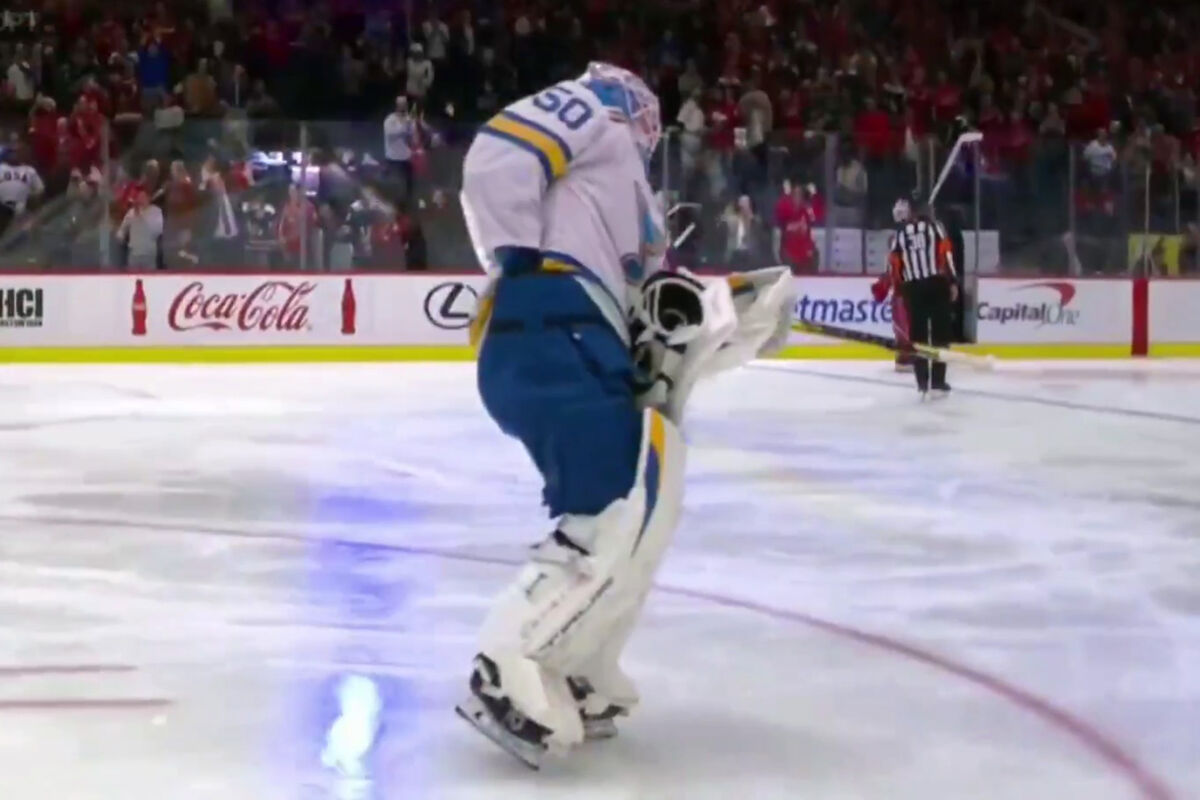 Биннингтон захотел забрать себе памятную шайбу, но арбитр подъехал к голкипру и попросил его отдать игровой снаряд.