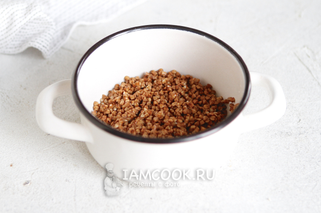 Промойте гречку в прохладной воде несколько раз и откиньте на дуршлаг. Переложите в кастрюлю.