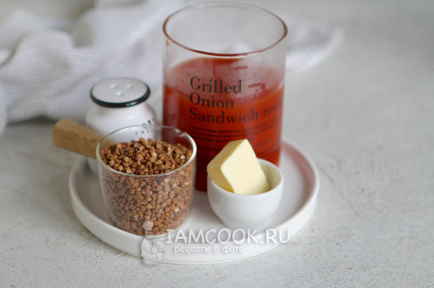 Перед вами все продукты, которые нам понадобятся для приготовления гречки в томатном соке.