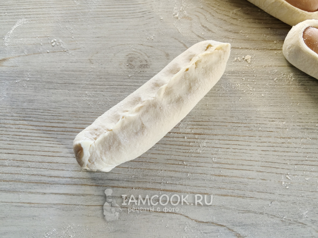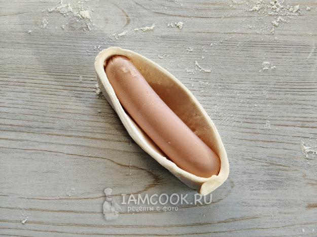 Положить внутрь сосиску.
