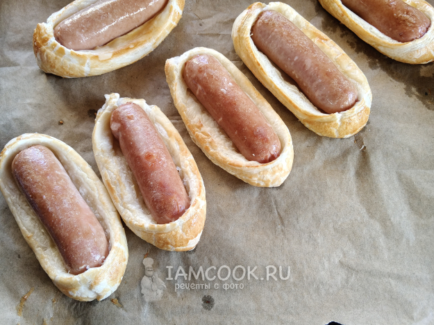 Для приготовления хот-дога из слоеного теста надо заранее разморозить тесто.