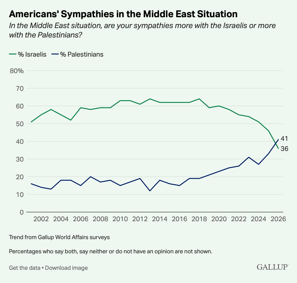 «Исследование Gallup вышло буквально за сутки до начала войны с Ираном. С того момента общественное мнение в США наверняка ещё сильнее изменилось не в пользу Израиля. Электорат Демпартии стал негативно воспринимать Израиль ещё с 2022 года. Сейчас аж две трети демократов в большей степени солидарны именно с палестинцами, а не с израильтянами», — отмечает американист.