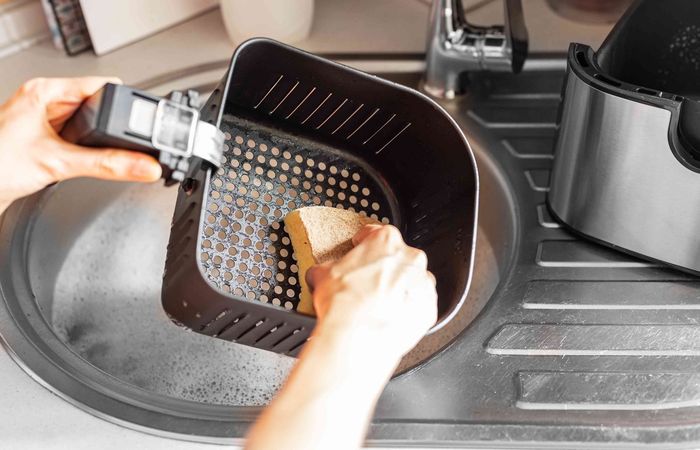 Правильна очистка нагревательного элемента – это не просто вопрос аккуратности, а важна мера безопасности. Делать это нужно без спешки и пониманием того, как устроен прибор. Прежде всего аэрогриль обязательно отключают от сети и дают ему полностью остыть. Даже слегка тёплый элемент может быть опасен (есть риск ожога или повреждения поверхности при контакте с влагой). Чтобы облегчить доступ, устройство аккуратно наклоняют или переворачивают, но делать это нужно строго по инструкции производителя, чтобы не повредить внутренние детали.
