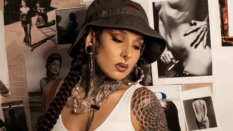 Это было моим 15-летним проявлением. Когда мне было 13, я начала слушать калифорнийский панк и увлекся Blink-182. Потом я начала смотреть много комедий, таких как "Американский пирог" и тому подобное. Я действительно хотела поехать в Америку, я покрасила ногти в виде американского флага. Я хорошо вяжу, поэтому связала себе кроп-топ с американским флагом и надписью Blink-182 на спине большими буквами. Я переехала сюда в 2020 году, вышла замуж, а в 2021 году начала получать грин-карту. Мне нравится здесь, в Калифорнии. И снова демонстрация работ.”