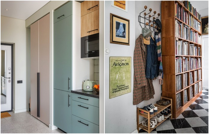 Если в прихожей останется место (например, в углу), установите здесь кресло или компактную банкетку. Тогда библиотека станет еще и удобным местом для чтения. Рядом идеально будет смотреться компактный кофейный столик или полка, которую можно будет использовать для того, чтобы поставить чашку с кофе.