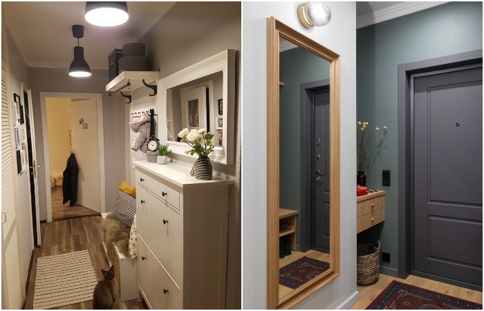 Даже если прихожая небольшая, это совсем не значит, что у вас не получится разделить ее на функциональные зоны, у каждой из которых будет свое назначение. Например, первая часть, расположенная сразу на входе, может выполнять роль классической прихожей: здесь вы будете одеваться и раздеваться, выбирать обувь, смотреть на себя в зеркало, вешать одежду в шкаф, а ключи – на ключницу. Далее распорядитесь площадью, как вам угодно. Отличный вариант – домашняя библиотека. Обычно в квартире не хватает отдельного места для шкафа с книгами, а коридор – отличный вариант для их красивого и удобного расположения.