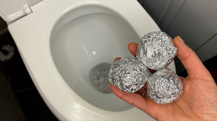 Дальше влейте стакан уксуса и оставьте смесь на ночь. Уксус вступит в реакцию с содой, в ходе которой образуется пена – именно она разъест известковый налет и прочие загрязнения. Что касается фольги, то она сыграет роль мягкого абразива и поможет «физически» отделить налет от стенок унитаза.