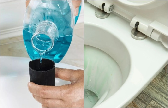 Удивительно, как привычный продукт, который стоит на полках многих людей, способен справиться с загрязнениями на сантехнике. А главное – это не требует никаких сложных манипуляций. Все, что вам нужно – взять ополаскиватель для полости рта, аккуратно нанести под ободок унитаза, чтобы жидкость медленно стекала по стенкам, а затем оставить на 30-40 минут. Для чистки будет достаточно одного колпачка средства, больше не нужно.
